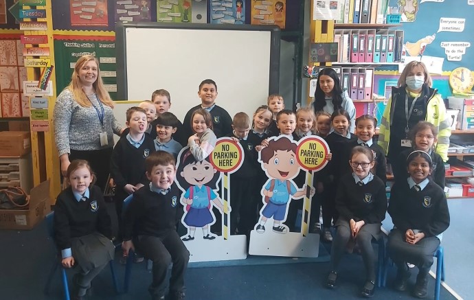 The PCSP also brought along two special guests on their visits to the schools – road safety signs ‘Anita Stop’ and ‘Luke Listen’. These signs will be located at entrance to schools to highlight the issues of parking dangerously outside primary schools – including blocking visibility at the entrance of the school and parking on zig-zag lines.