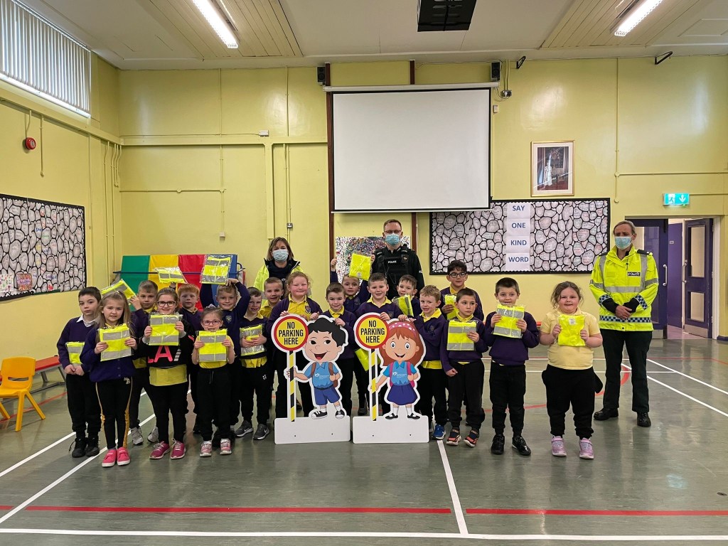 Councillor Jill Macauley, Chair of the PCSP, commented; “We are delighted to have been welcomed into so many schools to deliver this vital message. Children are one of the most vulnerable road users but with education, risks can be reduced and lives saved. We look forward to seeing the Primary 3 children wearing their high vis-vests and cycling helmets and sitting in their car booster seats.”