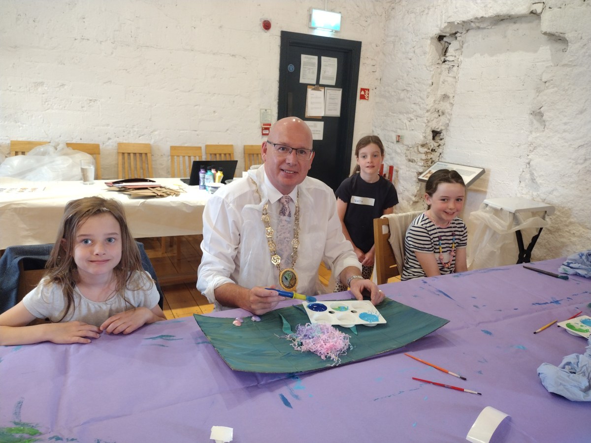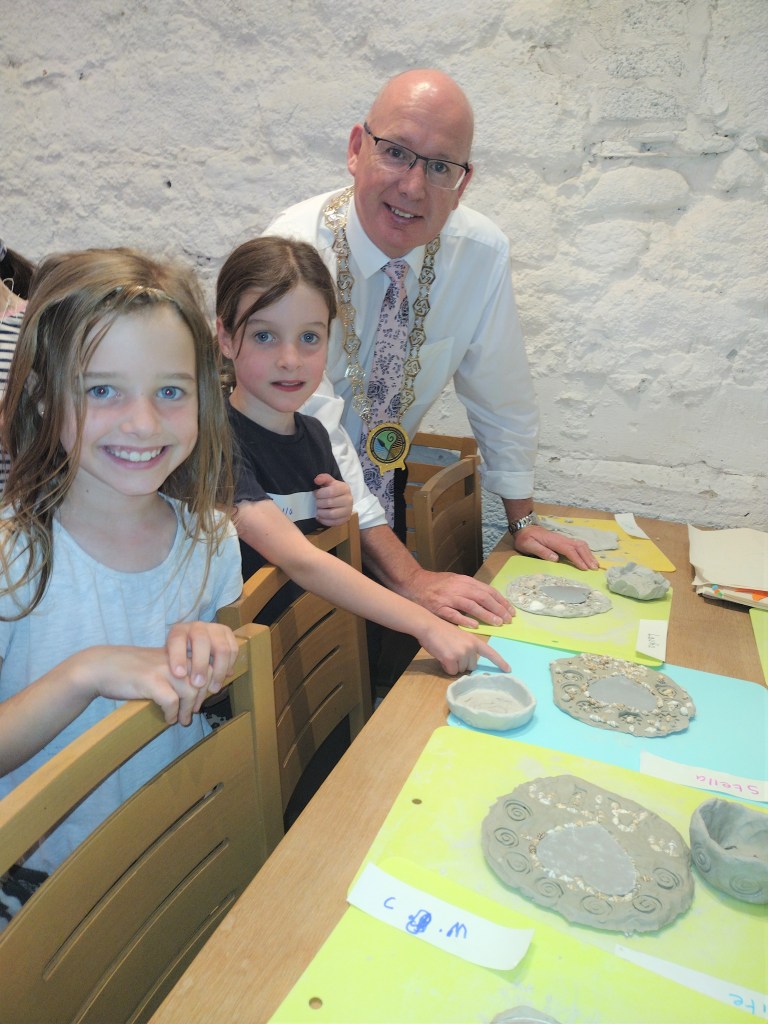 Council Chairperson, Cllr Michael Savage paid a visit to Newry and Mourne Museum to see if the children were enjoying their week-long summer arts and crafts workshops at the Museum.