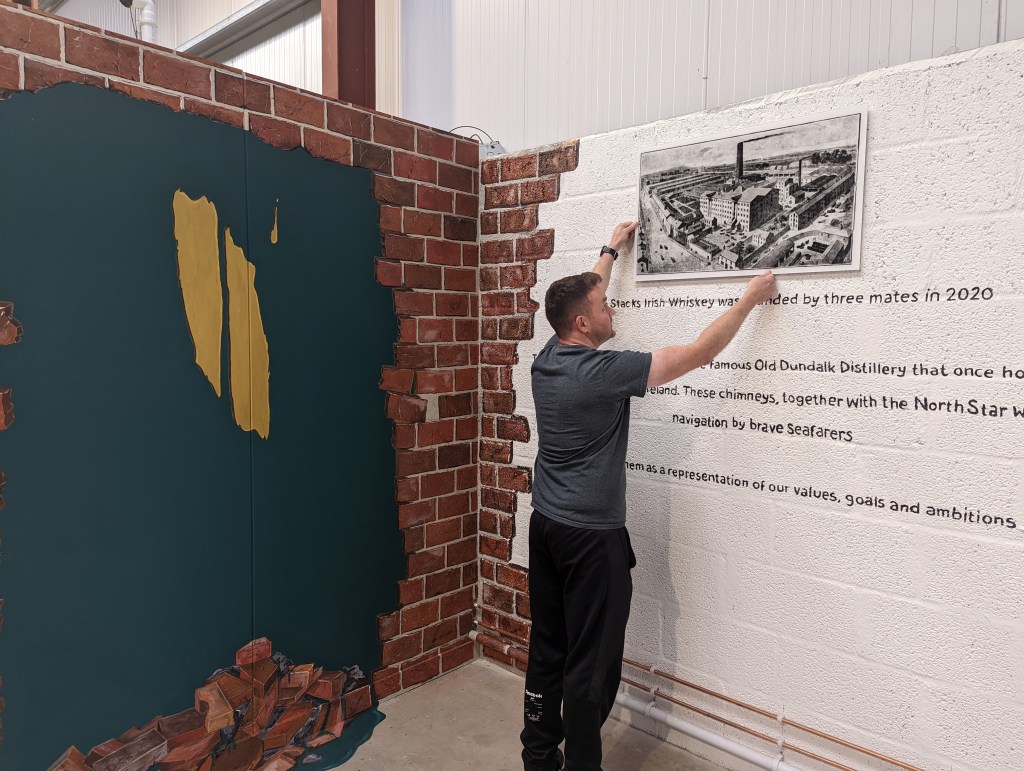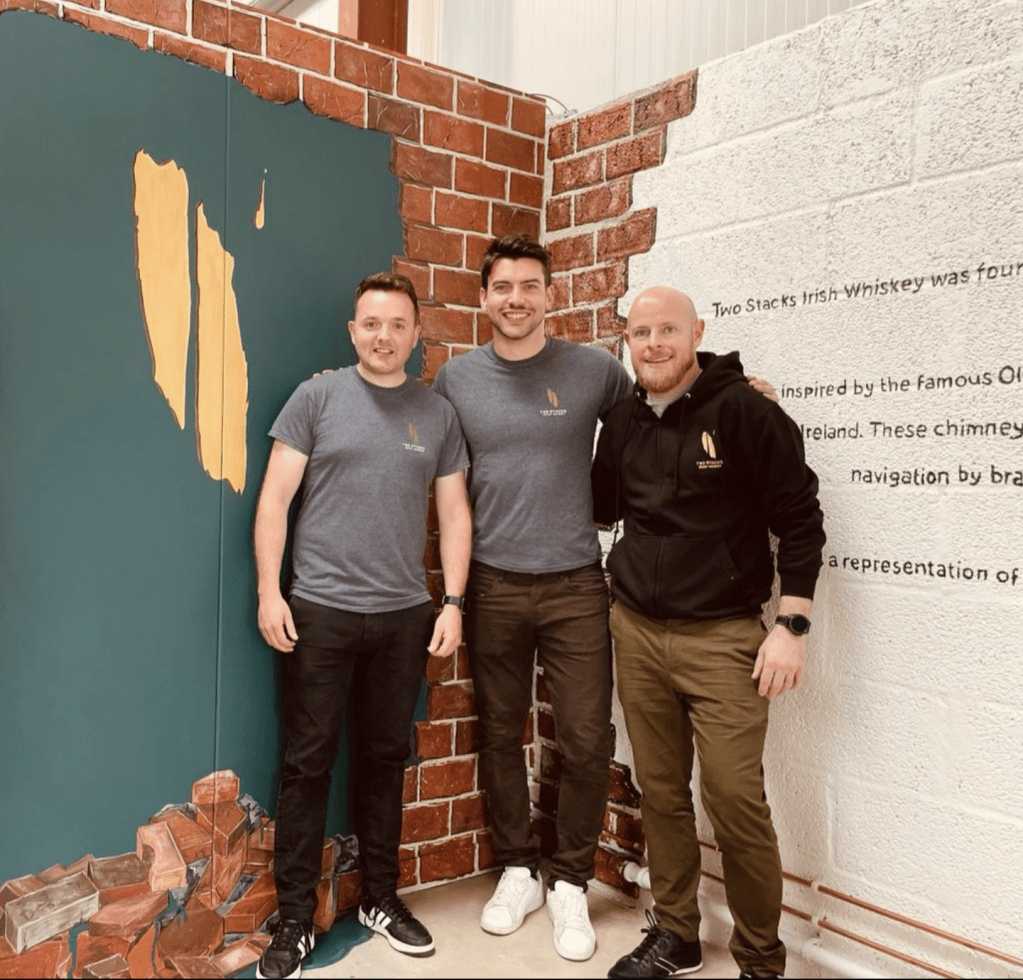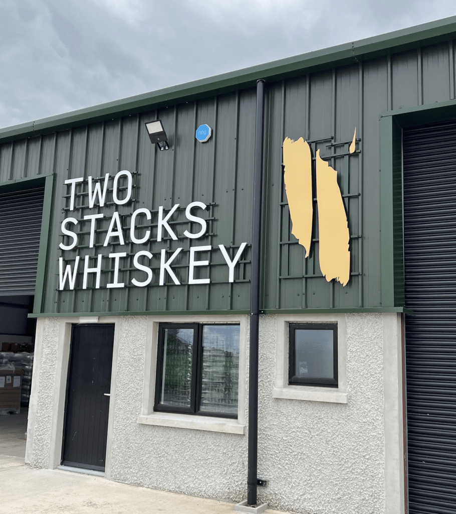 “We have a lot of thanks to give to our incredible designer Johnny Lloyd, and local engineering talents at Walcon in Banbridge, and 4Corners signage that helped us immensely in pulling this all together in such a quick time period. We would also like to thank Cardy Timber and Craig in creating a beautiful tasting table made from local felled Irish Oak and now proudly sitting in the new blending room ‘The Loft’ for visitors to sit and experience their Two Stacks whiskies. ”