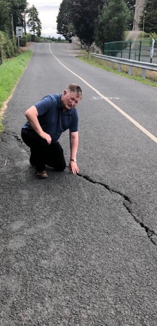 Cllr McGeough who had warned drivers to “slow down and be mindful of the subsidence” had spoken in the past 10 months of how shocked “and rapid the deterioration had been. This particular road beside the playground is used by farm vehicles and my big fear was that a large tractor or vehicle carrying a load would find itself upended causing further damage to the road and possible other vehicles nearby.”