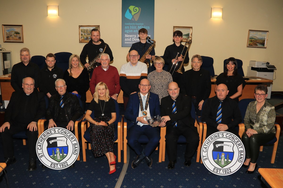 Newry’s St. Catherine’s Concert Band was honoured at a Civic Reception hosted by Newry, Mourne and Down District Council Chairperson, Councillor Michael Savage on Wednesday 30 November to mark its 100th anniversary.