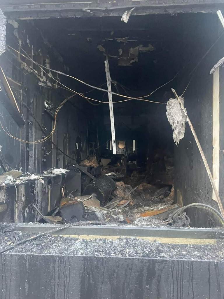 Extensive damage was caused to the business and the front right window of the property was also smashed. Smoke and water damage was also caused to an adjoining business.