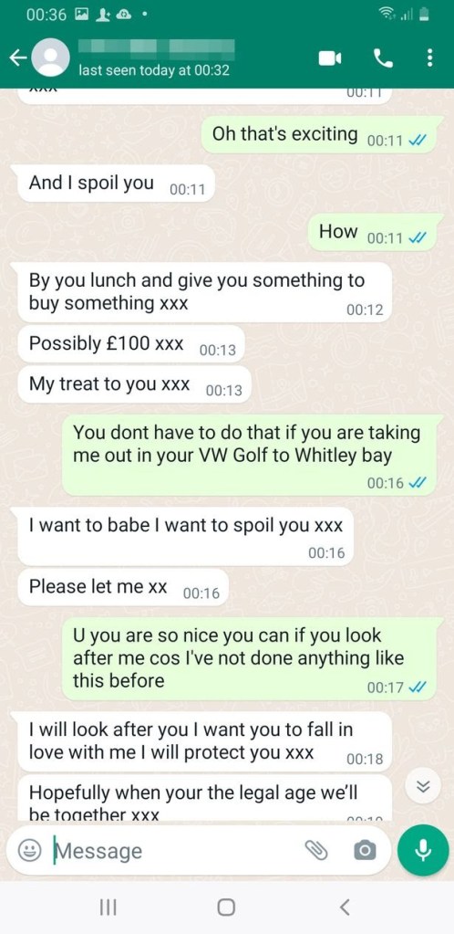 In another message he talks about treating her and spoiling the 14 year old and falling in love with her.