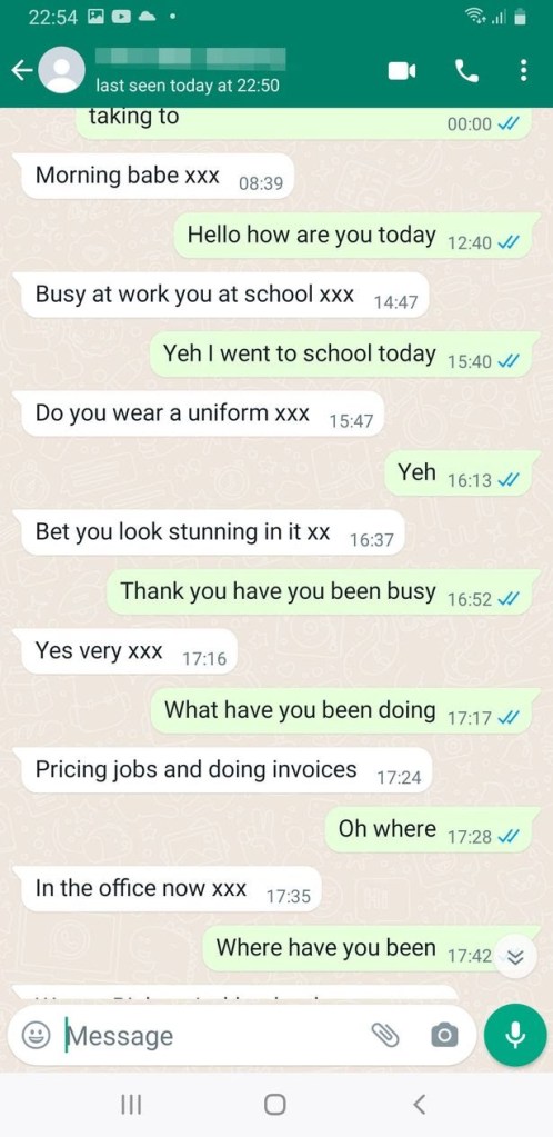In one message Mr Walker says he wants to make the 14 year old feeling special and talks about having a sexy accent. He puts several xs at the end of his messages.