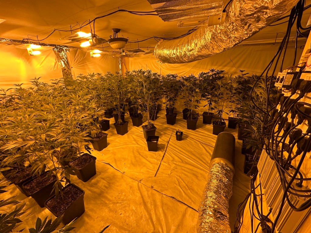 “Upon entering the property, they located a suspected cannabis factory. A large quantity of plants was discovered, alongside equipment believed to have been used in the cultivation of the plants.