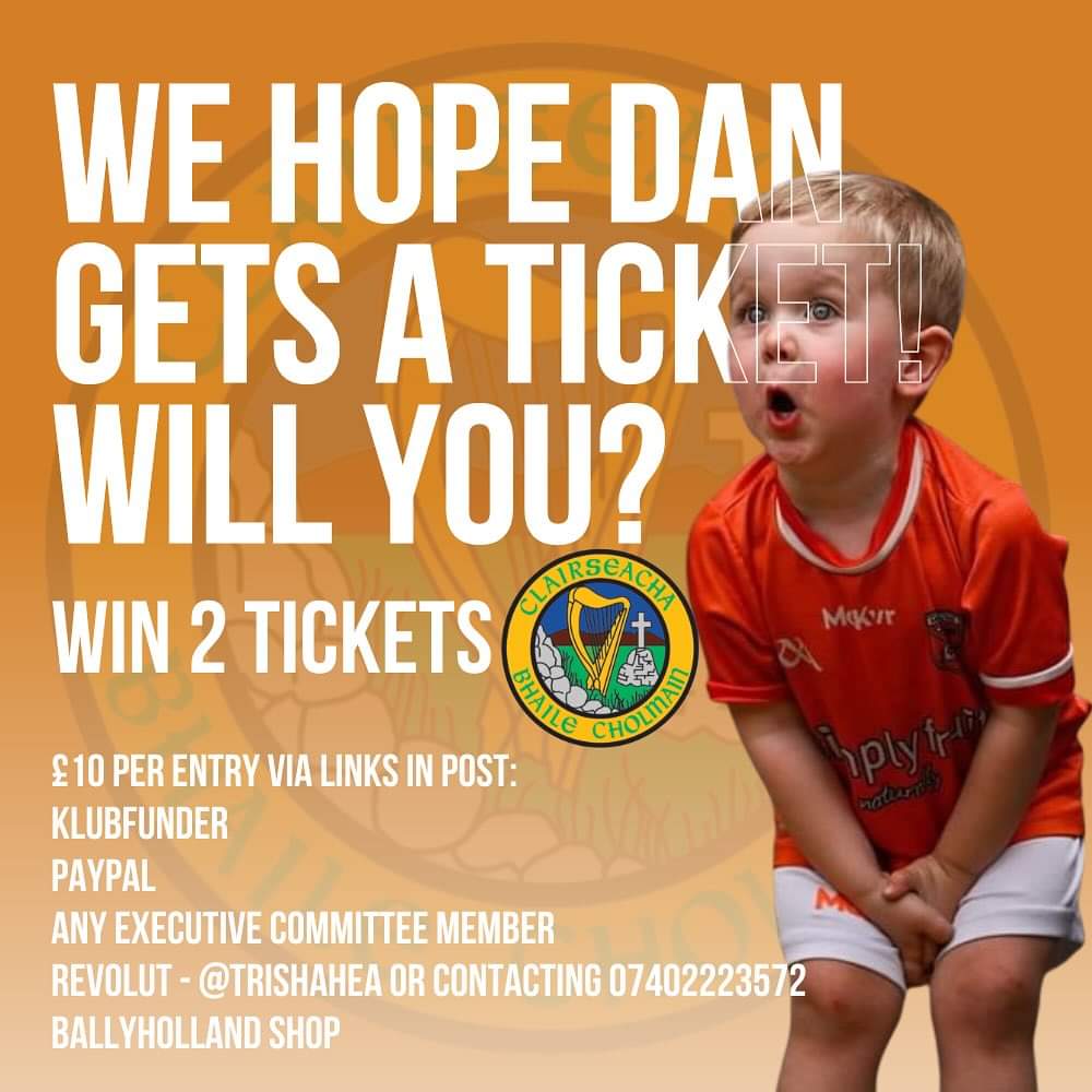 T&CS: Meta do not run or endorse this competition. We will not contact you via messenger. The draw will be done LIVE on Ballyholland GAC Facebook page on Friday 26th July, 2024 approx 9pm.