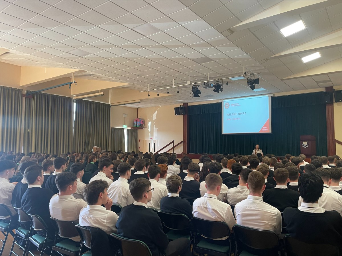 In collaboration with the Northern Ireland Fire and Rescue Service (NIFRS), the PCSP co-ordinated a road safety session with Sacred Heart Grammar School and The Abbey CBS Grammar School. Held on Wednesday, 9 April, over 250 students attended the ‘Your Choice’ presentation, a hard-hitting educational talk that focused on the dangers of distractions while driving, driving under the influence, and the use of mobile phones behind the wheel.